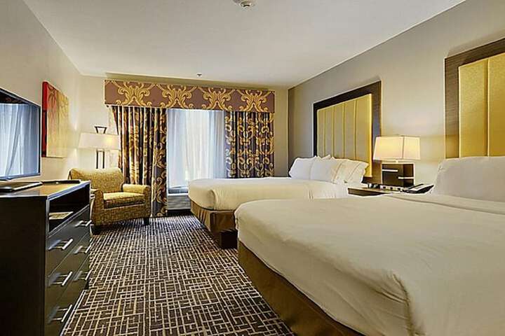 Near Discoveries From the Past Located in Gonzales, Holiday Inn Express & Suites Gonzales, an IHG Hotel is in a rural location, within a 5-minute drive of Guadalupe River and Main Street. This hotel is 1.7 mi (2.7 km) from Discoveries From the Past and 1.7 mi (2.8 km) from Confederate Square. Make yourself at home in one of the 62 air-conditioned rooms featuring refrigerators and flat-screen televisions. Complimentary wired and wireless internet access keeps you connected, and cable programming provides entertainment. Bathrooms with shower/tub combinations are provided. Conveniences include desks and microwaves, as well as phones with free local calls. A complimentary buffet breakfast is served daily.