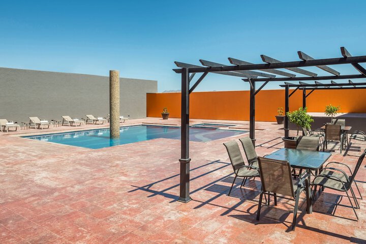 Near Central Park Located in Ciudad Juárez, Real Inn Ciudad Juárez by the USA Consulate is in the business district, a 2-minute drive from American Consulate and 9 minutes from Ysleta–Zaragoza International Bridge. This hotel is 6.7 mi (10.8 km) from El Paso Museum of Art and 6.8 mi (10.9 km) from El Paso Museum of History. Make yourself at home in one of the 146 guestrooms. Complimentary wired and wireless internet access keeps you connected, and satellite programming provides entertainment. Private bathrooms with showers feature rainfall showerheads and complimentary toiletries. Conveniences include phones, as well as laptop-compatible safes and desks. Satisfy your appetite for lunch or dinner at Stock Cafe, a restaurant which specializes in international cuisine, or stay in and take advantage of the room service (during limited hours). Wrap up your day with a drink at the bar/lounge. Buffet breakfasts are available daily from 7:00 AM to noon for a fee.