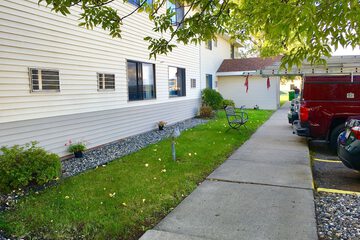 Well-lit path to entrance