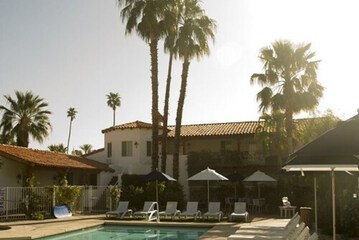 In Palm Springs (Uptown Design District) With a stay at Alcazar Palm Springs in Palm Springs (Uptown Design District), you'll be within a 15-minute drive of Palm Springs Convention Center and Palm Springs Aerial Tramway. This hotel is 7.3 mi (11.7 km) from Palm Canyon and 10.3 mi (16.5 km) from Agua Caliente Casino. Make yourself at home in one of the 34 individually furnished guestrooms, featuring refrigerators and LED televisions. Your pillowtop bed comes with down comforters and Egyptian cotton sheets. Cable television is provided for your entertainment. Bathrooms feature showers, complimentary toiletries, and hair dryers. At Alcazar Palm Springs, enjoy a satisfying meal at the restaurant. Wrap up your day with a drink at the bar/lounge.