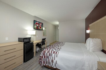 Near Crabtree Valley MallMake yourself at home in one of the 61 air-conditioned rooms featuring microwaves and flat-screen televisions. Complimentary wireless internet access keeps you connected, and cable programming is available for your entertainment. Private bathrooms have complimentary toiletries and hair dryers. Conveniences include desks and coffee/tea makers, as well as phones with free local calls.With a stay at Red Roof Inn Raleigh North-Crabtree Mall/PNC Arena in Raleigh (North Hills), you'll be a 5-minute drive from UNC REX Hospital and 5 minutes from North Carolina State University. This hotel is 3.8 mi (6 km) from North Carolina Museum of Art and 4 mi (6.5 km) from Raleigh Little Theater.Distances are displayed to the nearest 0.1 mile and kilometer.