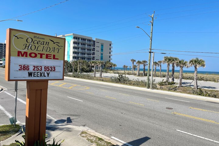 Near Beach at Daytona Beach Located in Daytona Beach (South Peninsula Historic District), Ocean Holiday Motel is steps from Beach at Daytona Beach and a 3-minute drive from Daytona Beach Boardwalk. This motel is 5.7 mi (9.2 km) from Daytona International Speedway and 18.1 mi (29.2 km) from New Smyrna Beach. Make yourself at home in one of the 10 air-conditioned rooms featuring kitchens with full-sized refrigerators/freezers and microwaves. Complimentary wireless internet access keeps you connected, and cable programming is available for your entertainment.