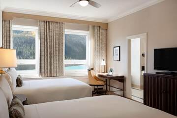 Near Louise LakeStay in one of 539 guestrooms featuring Smart televisions. Flat-screen televisions are provided for your entertainment. Private bathrooms with shower/tub combinations feature designer toiletries and hair dryers. Conveniences include phones, as well as safes and desks.When you stay at Fairmont Chateau Lake Louise in Lake Louise, you'll be on a lake, within a 15-minute drive of Banff National Park and Icefields Parkway. This luxury hotel is 4.4 mi (7.1 km) from Lake Louise Mountain Resort and 8.9 mi (14.3 km) from Moraine Lake.Distances are displayed to the nearest 0.1 mile and kilometer.