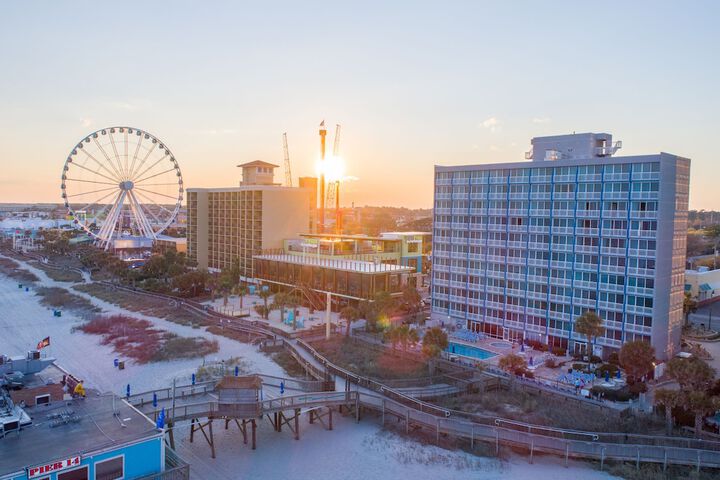 Near Myrtle Beach Boardwalk With a stay at Yachtsman Ocean Front Resort in Myrtle Beach (Downtown Myrtle Beach), you'll be steps from Myrtle Beach Boardwalk and Myrtle Beach Beaches. This beach vacation home is 0.1 mi (0.2 km) from SkyWheel Myrtle Beach and 1.7 mi (2.8 km) from Family Kingdom Amusement Park. Make yourself at home in one of the 160 air-conditioned rooms featuring private pools and flat-screen televisions. Kitchens are outfitted with full-sized refrigerators/freezers, ovens, and stovetops. Complimentary wireless internet access keeps you connected, and cable programming is available for your entertainment. Conveniences include safes and microwaves.